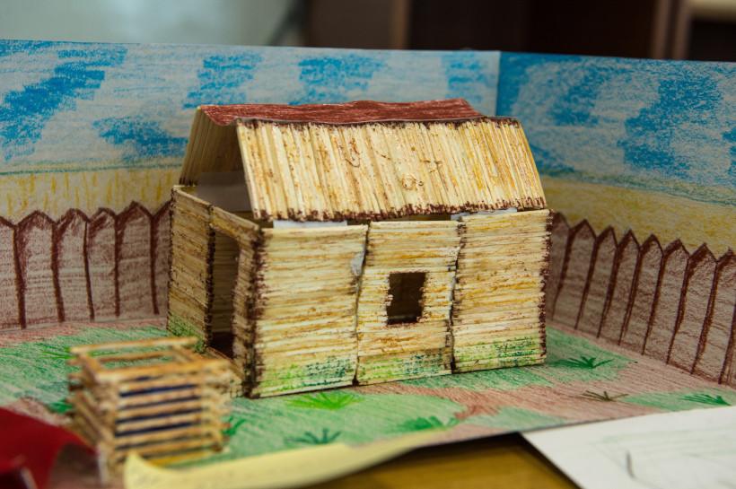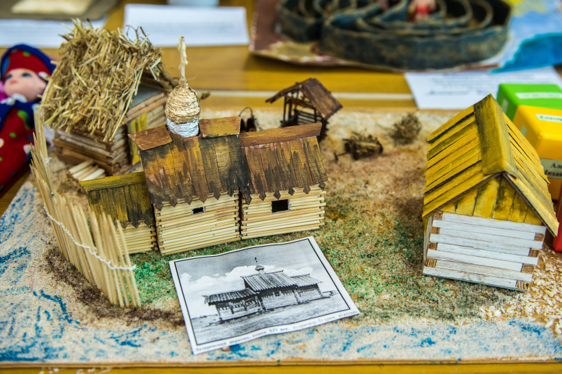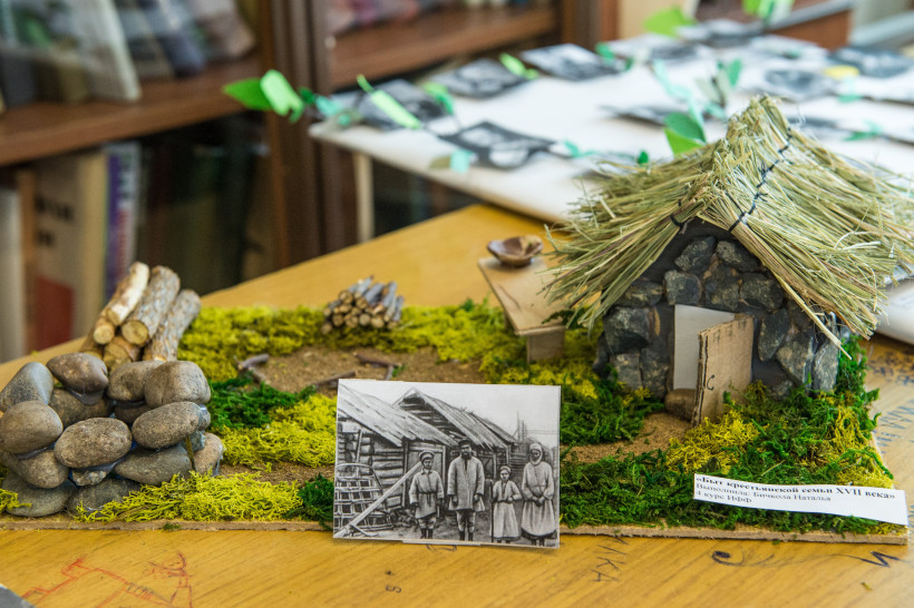 — Подручный материал мог быть любым. Мне больше всего понравился дом с фотографией крестьянской семьи, там даже есть посуда на скамье, сделан колодец, дрова лежат. Это, на мой взгляд, самая интересная работа — потому что сюжетная, — рассказала начальник отдела по связям с общественностью БГПУ Александра Горкуша.