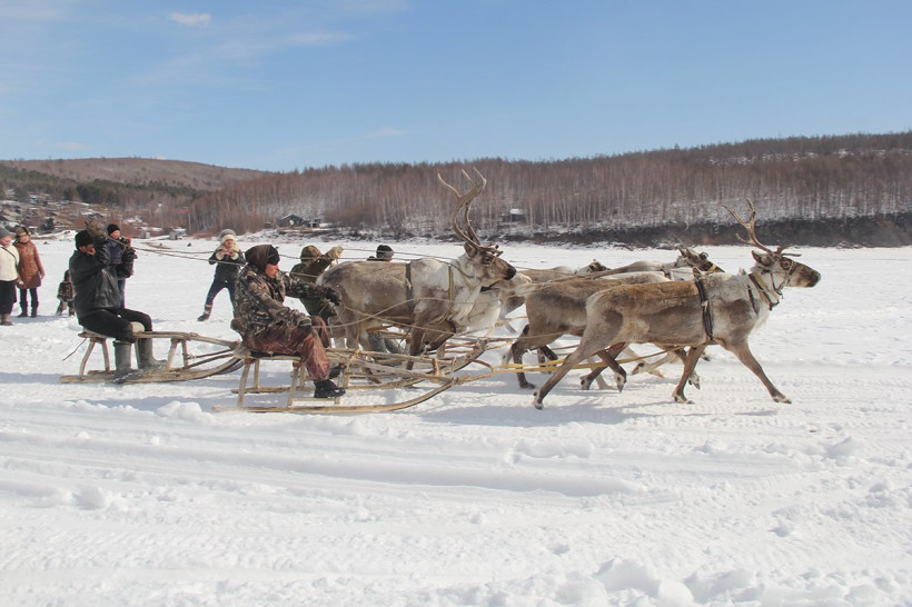 К главному событию года здесь тщательно готовятся. Рано утром вблизи поселка на замерзшей реке Олекме представители родовых общин начали устанавливать палатки-чумы, в которых живут на стойбище оленеводы, и сцену. Тамара и ее маленький братик Валера пришли пораньше, чтобы посмотреть на оленей. И это, действительно, незабываемый момент, когда со всех сторон из села и тайги на реку начали стекаться оленьи упряжки, подгоняемые каюрами. Мерный звук колокольчика (кангилана), который вешается на шею оленя-вожака, летит над рекой. Особо выделяются крупные белые олени — гордость родовых общин, священный тотем. Их так и зовут — «сэвэк», то есть божество.