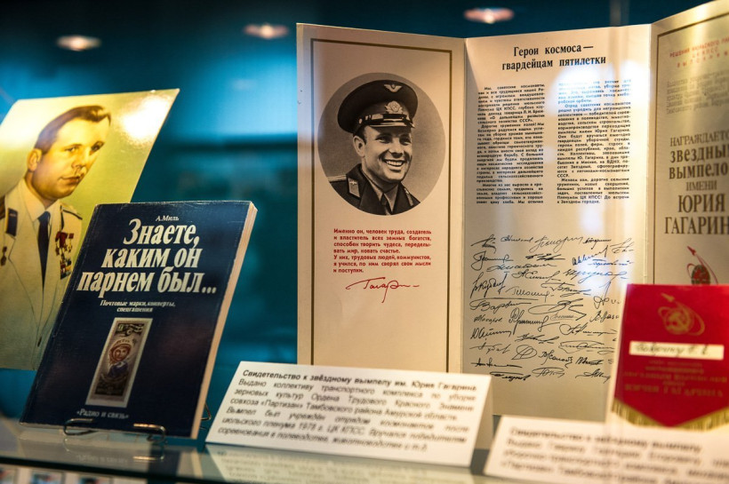 Фуражка Героя Советского Союза Алексея Леонова, фрагмент парашюта, на котором спускались советские космонавты, и даже елочные украшения прошлого века на космическую тему — эти и другие экспонаты можно увидеть в Амурском областном краеведческом музее. Здесь открылась выставка космических экспонатов к 55-летию полета Юрия Гагарина. В качестве названия экспозиции выбрали фразу, произнесенную первым космонавтом во время старта корабля «Восток», — «Поехали!» Амурчане смогут видеть более 500 экспонатов, посвященных теме космоса. Выставка проработает до 17 апреля. Есть также экспонаты, посвященные новой истории космонавтики — космодрому Восточный.