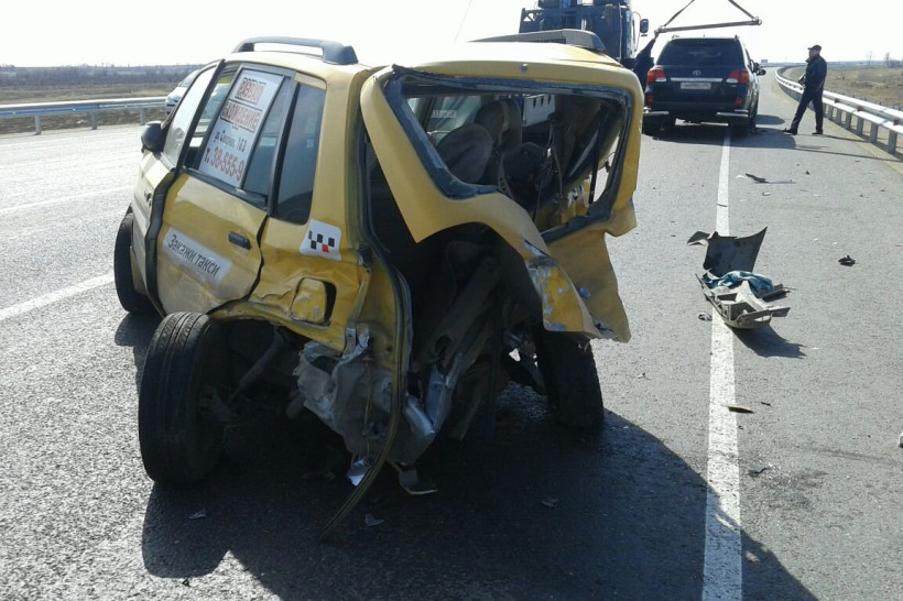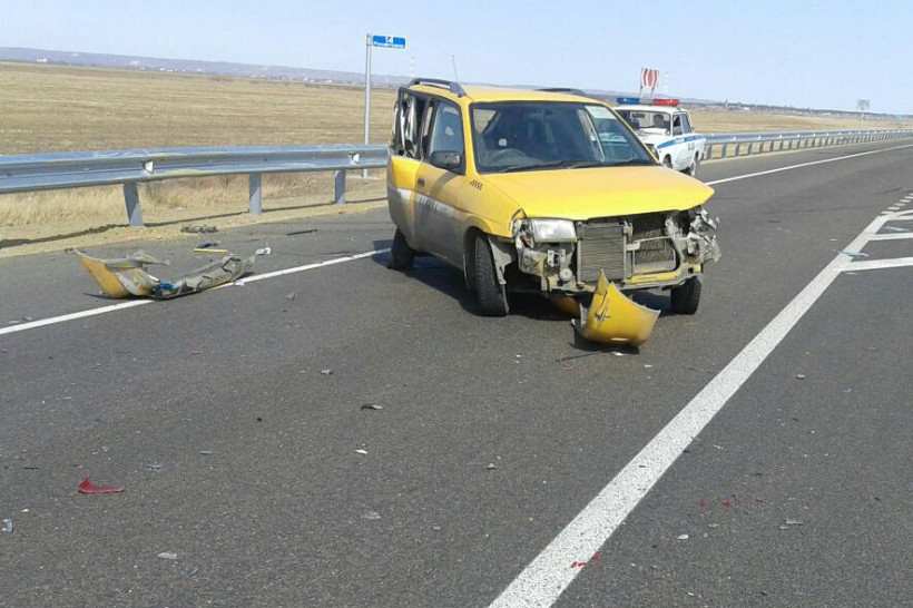 На белогорской трассе джип отбросил таксомотор на леерное ограждение
