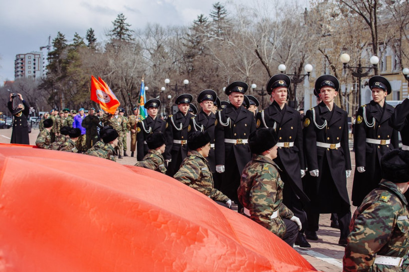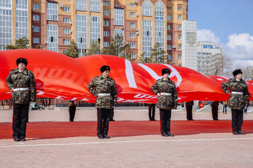 В Благовещенск привезли 200-метровое Знамя Победы (фото)