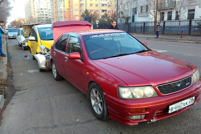 Водитель Ниссана остановился на перекрестке на красном сигнале светофора, следом за ним притормозила Тойота. А вот владелец Волги стал жать на педаль газа слишком поздно: произошло жесткое столкновение. Отечественное авто врезалось в Тойоту, а та, в свою очередь, протаранила Ниссан. Машины пострадали серьезно, людям медицинская помощь не потребовалась.