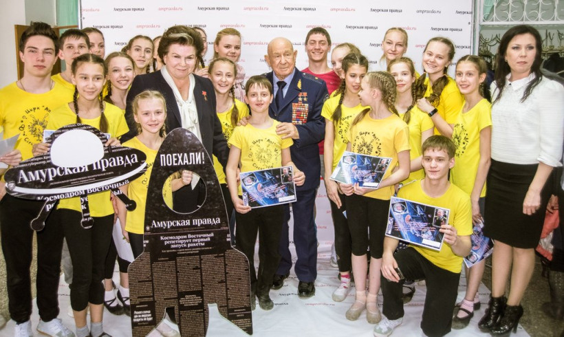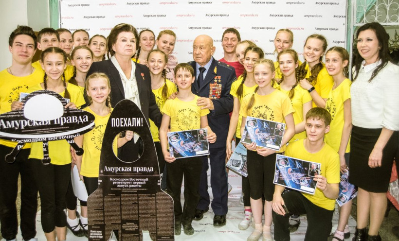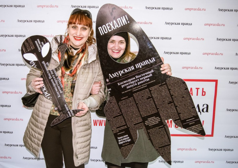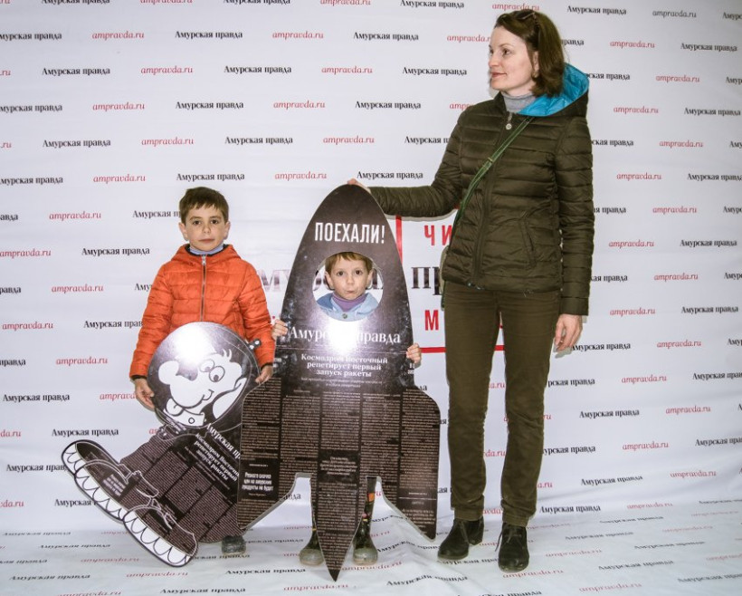 В кадре — космонавты, строители, артисты и жители городкаВ День космонавтики фотосалон АП впервые работал на выезде. В юбилейную дату первого полета человека он открылся в Циолковском. В новый город, где встречали почетных гостей Валентину Терешкову и Алексея Леонова и проводили фестиваль современного искусства «Космо-Фест», корреспонденты «Амурской правды» прибыли вместе с коллективом областной филармонии. Желающие активно фотографировались с ракетой, летающей тарелкой, в скафандре и другими космическими фигурами. Легендарные космонавты, строители космодрома, представители Роскосмоса, жители Циолковского, участники фестиваля и гости Приамурья стали гостями фотосалона.