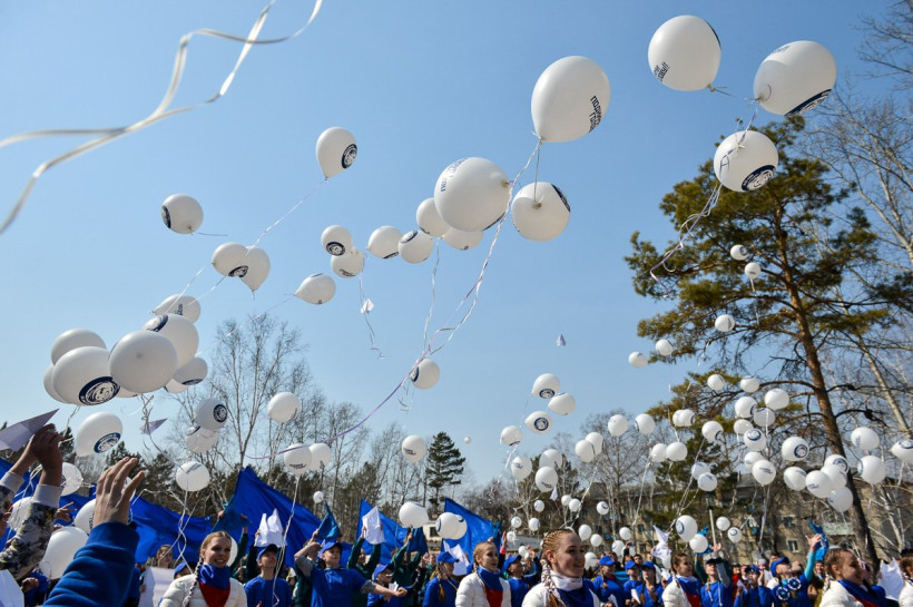 Около 300 шаров с изображением первого космонавта планеты отпустили в небо амурские школьники и студенты во время флешмоба «Подними голову». Такими же шарами украсили холл КДЦ «Восток», и каждый желающий мог взять шарик в память о празднике.