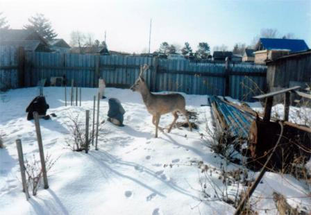 Опытный охотничий пес Черныш загнал животное во двор: оба лихо перемахнули через забор, сообщает газета «Зейский вестник». Судя по всему, самец косули оказался в городе еще вечером, собаки долго гоняли лесного жителя по улицам. А утром его обнаружил охотник с многолетним стажем Алексей Номоконов. Почти полтора часа он «общался» с косулей, поджидая подмогу.