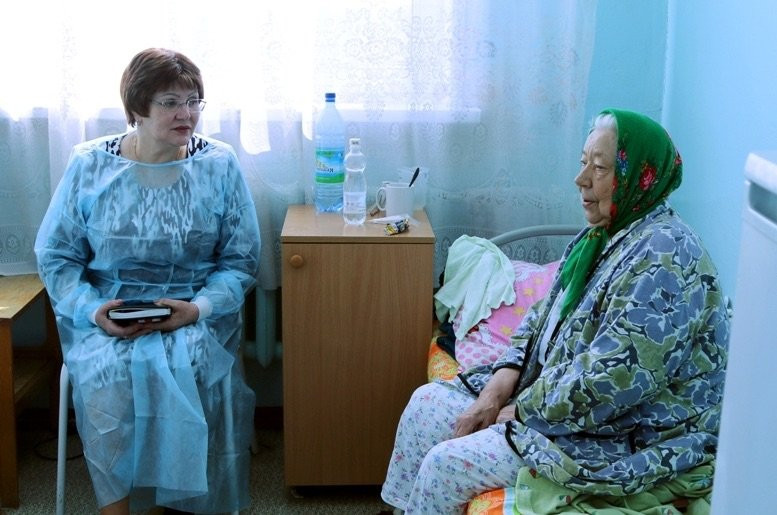 Галина Афанасьевна поинтересовалась здоровьем пожилых пациентов больницы, желала им выздоровления, чтобы 9 Мая они отметили на ногах и с хорошим настроением. Участница войны 89-летняя Анна Сергеевна Ильченко напела гостье знакомую песню, вспомнив о днях молодости. А Татьяна Семеновна Филимонова, которой два месяца назад исполнилось 100 лет, рассказала, как на своем юбилее она танцевала вальс. «И сейчас нормально. Я человек такой. Все выдержу», — призналась участница трудового фронта.