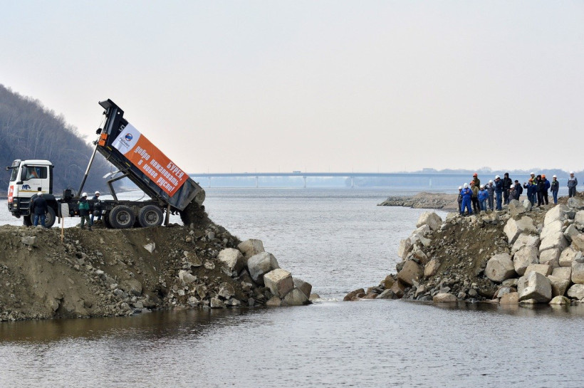Перекрытие Буреи — знаменательный этап строительства ГЭС. Операция по преграждению оставшейся свободной части реки была начата еще 18 марта. Тогда гидростроители затопили котлован основных сооружений ГЭС, частично перенаправили сток в новое русло, чтобы создать условия для отсыпки грунтовой плотины. Как рассказали представители ГЭС, все перемычки, которые удерживали воду, уже разобраны. В начале апреля на стройплощадке начали отсыпать левобережную часть грунтовой плотины. На данный момент строители оставили небольшой проран — отверстие, проход для временного пропуска воды. Сегодня в торжественной обстановке его засыплют грунтом. С этого момента весь сток пойдет через водосбросную часть. Перекрыть реку необходимо именно в весеннее время — когда малая водность и незначительная приточность.