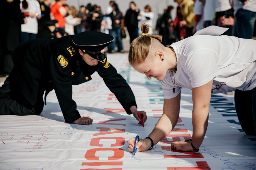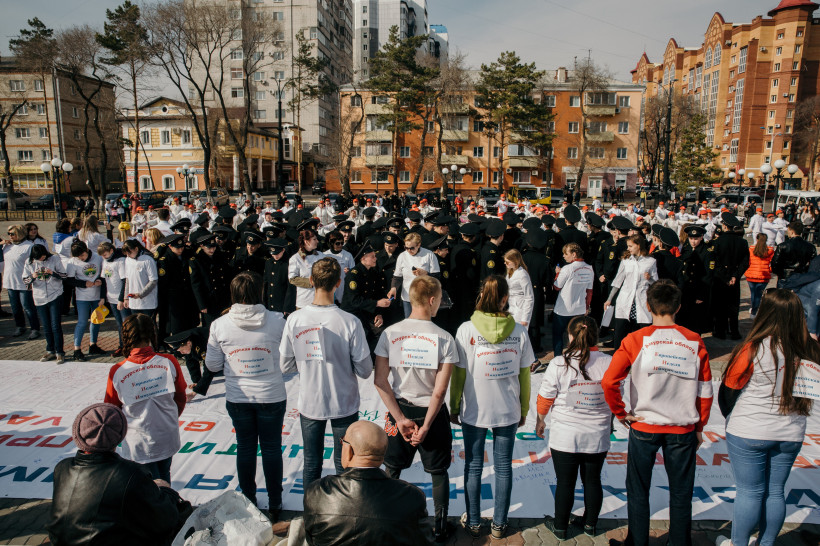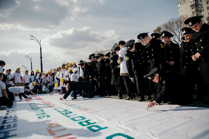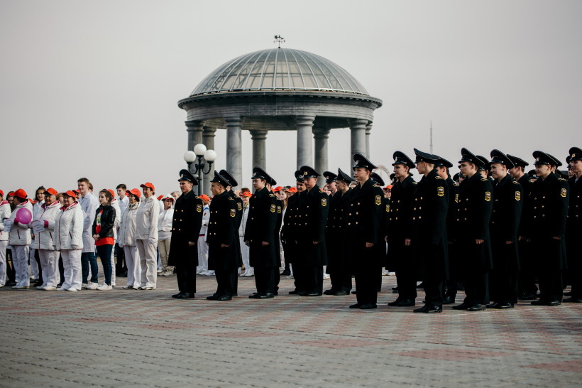 Среди студентов-участников были кадеты амурского филиала МГУ имени адмирала Г. И. Невельского. Они стали одной из живых букв.
