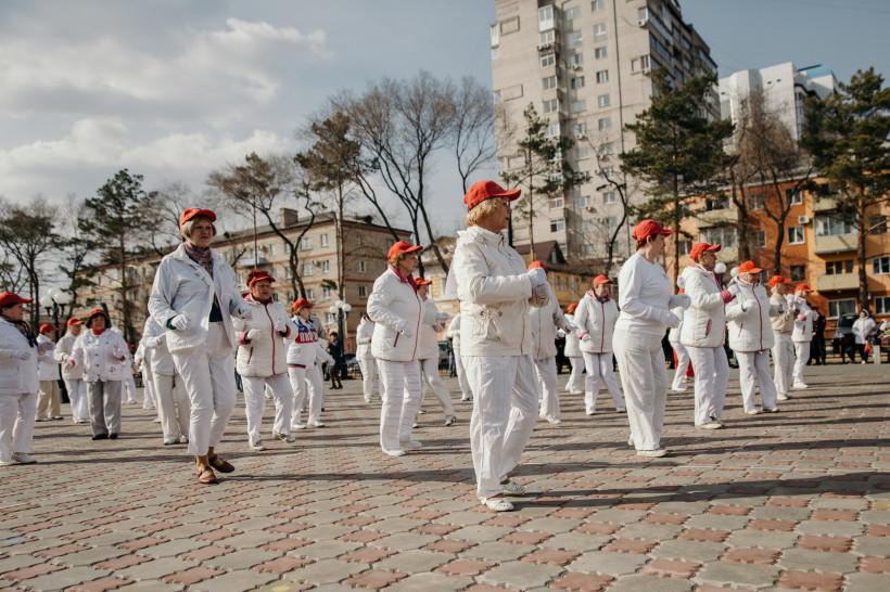 В акции также поучаствовали члены городской ассоциация пожилых людей — они исполнили на набережной несколько танцев в поддержку прививок.