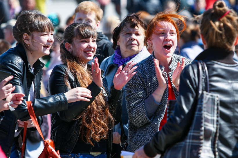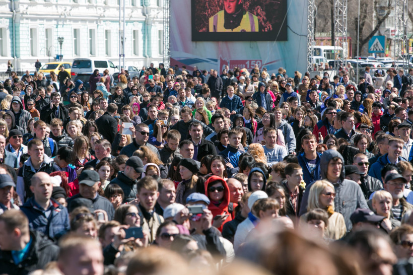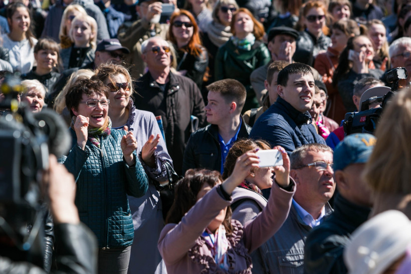 Когда первая ракета с тремя спутниками на борту отправилась в небо с космодрома Восточный, в толпе раздались крики «Ура!» и аплодисменты. Горожане на центральную площадь пришли целыми семьями, школы — классами. По некоторым данным, вчера в 11 утра здесь было около 3 тысяч человек.