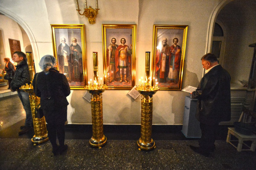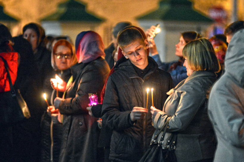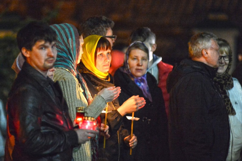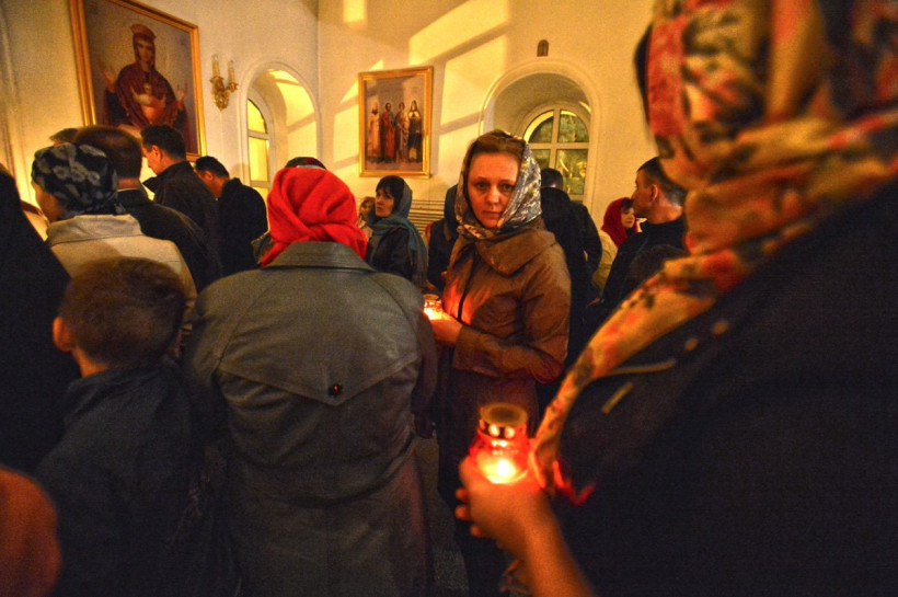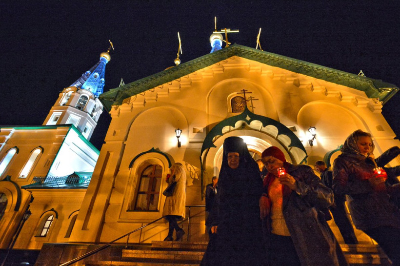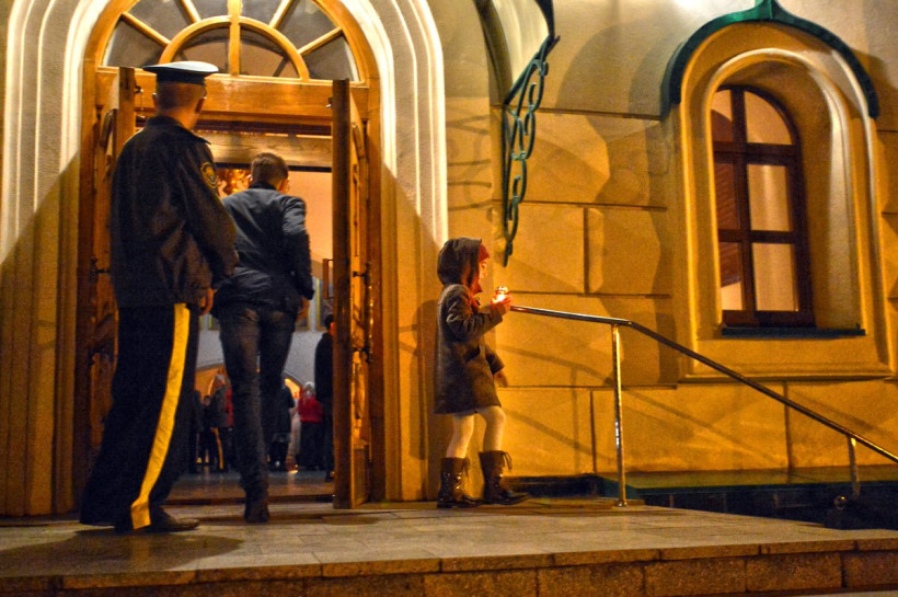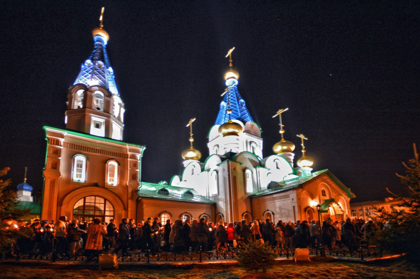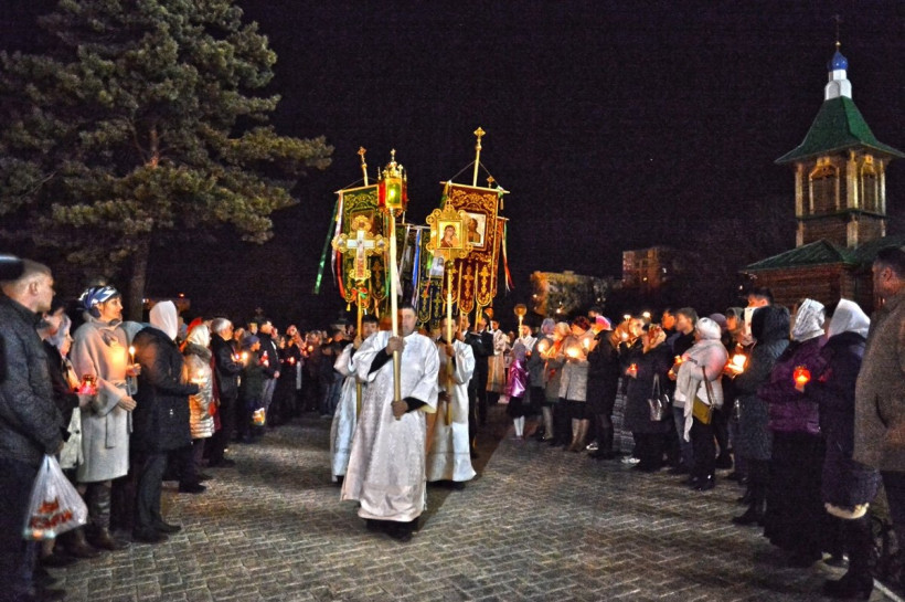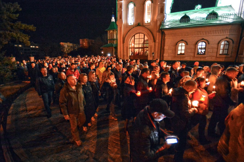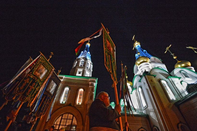 В ночь с 30 апреля на 1 мая православные амурчане встретили главный праздник — Пасху. Он знаменует воскрешение Иисуса Христа. На воскресную полунощницу в Благовещенский кафедральный собор пришли сотни людей. Под звон колоколов люди прошли с иконами и свечами. После крестного хода в храмах началась пасхальная утреня и литургия. Также во всех храмах и церквях сегодня будут освещать пасхальную снедь — куличи и крашеные яйца. За таинством наблюдал фотокорреспондент АП Андрей Ильинский.
