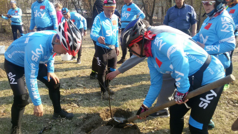 Китайские велосипедисты посадили деревья в Благовещенске