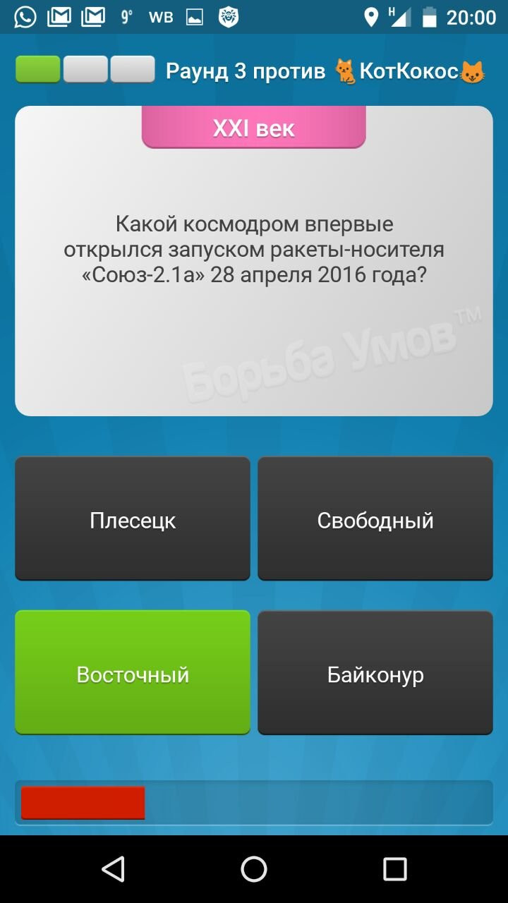 Вопрос о Восточном попал в рубрику «XXI век». В игре сражаются два участника в режиме онлайн. Можно выбрать в соперники друга или случайного игрока. В выбранной рубрике по три вопроса, к каждому даются по 4 варианта ответа и среди них нужно выбрать верный. Выигрывает, соответственно, самый умный. Кроме Восточного засветился в игре и Благовещенск. Один из вопросов игры — какова разница во времени между Москвой и столицей Приамурья.