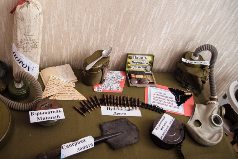 Интересны и настоящие военные вещи 40-х годов — все они из личных коллекций ветеранов войны и военной службы. Помимо пулеметной ленты, саперной лопатки, противотанковых мин, противогаза и каски, в музее можно увидеть набор простого солдата, который сопровождал его вплоть до победы. В небольшой коробочке хранятся очки, военная пряжка, помазок и лезвие. Есть среди экспонатов и небольшая капсула, которая также находилась всегда при воине: в ней указаны фамилия, имя, отчество солдата, год рождения, номер войсковой части, нитки и иголки.