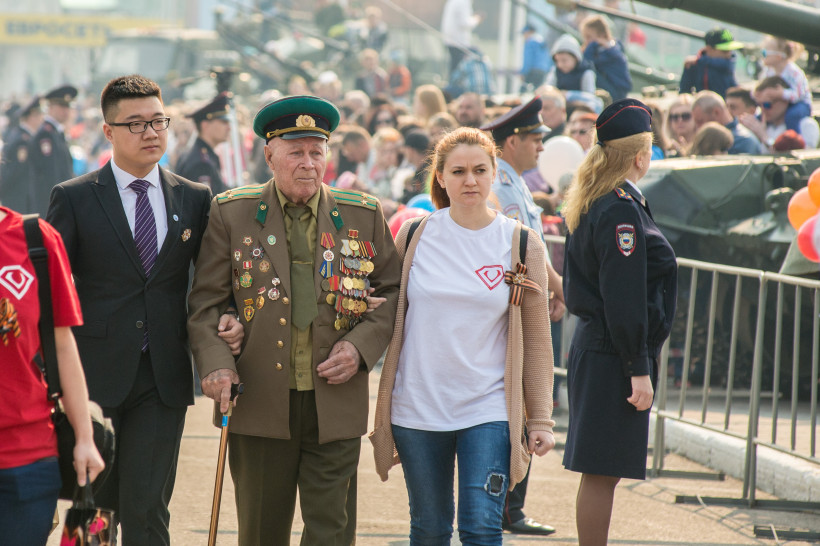 1 700 человек и 37 парадных расчётов — таковы масштабы парада Победы, который прошел сегодня, 9 мая, в Благовещенске. Основной состав участников остался неизменным — курсанты и офицеры ДВОКУ, сотрудники правоохранительных органов, ветераны боевых действий в Афганистане и других горячих точках, а также воспитанники кадетских классов школ и патриотических клубов. Лучшие зрительские места по традиции отвели тем, кто ковал эту победу более 70 лет назад. Многие пришли, несмотря на преклонный возраст и болезни, опираясь на поддержку родных и близких, для которых этот праздник тоже не чужой.