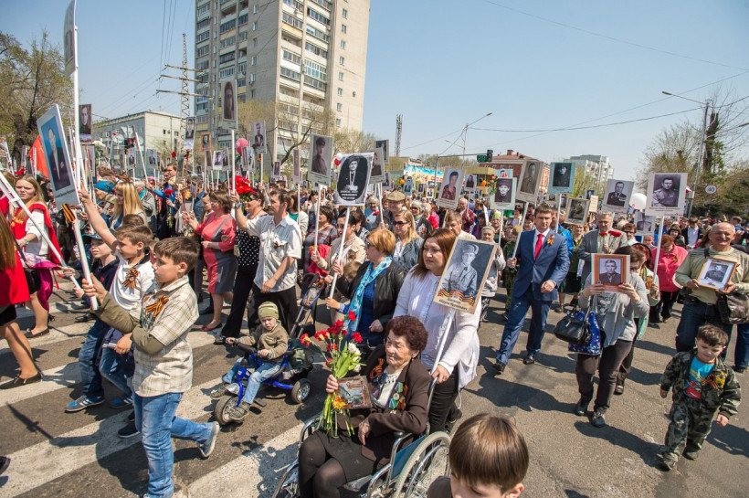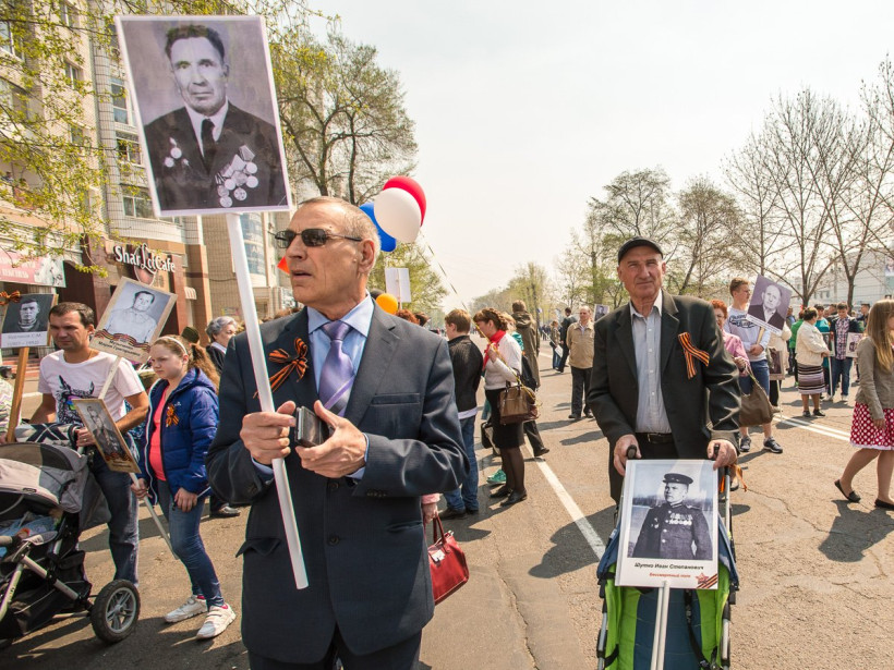 Уже четвертый раз Благовещенск поддержал акцию «Бессмертный полк», и с каждым годом она все популярней среди жителей нашего города. Сюда приходят целыми семьями — даже с колясками, в которых спят малыши.