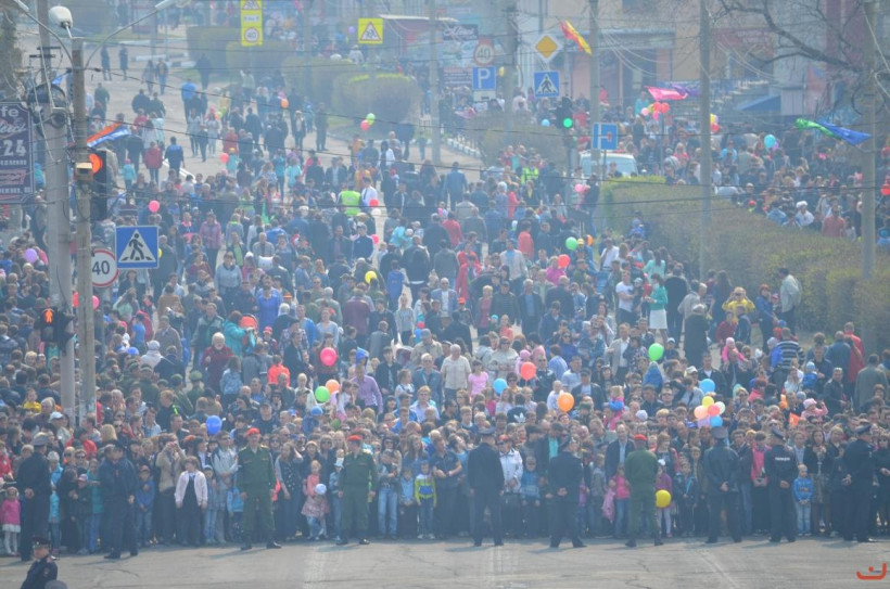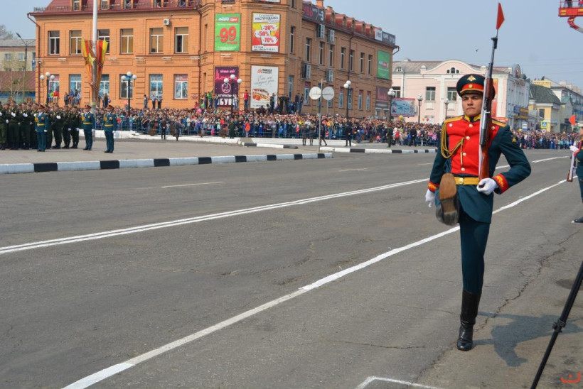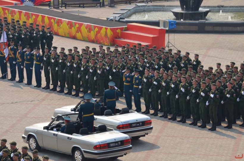 Сегодня, в День Победы, в Белогорске прошел уникальный военный парад. Амурский город — один из 26 в России, где 9 мая празднуют с участием военной техники. По Белогорску проехали 26 боевых машин и прошли около тысячи военнослужащих. В строю техники были комплексы «Град», наследники легендарной «Катюши», реактивные системы залпового огня «Ураган», зенитно-ракетные комплексы «Оса», танки Т-72БЗ, самоходные артиллерийские установки и другие машины. Впервые в параде поучаствовали высокомобильные бронеавтомобили ГАЗ-3937 «Водник». Принимал парад командующий 35-й Краснознаменной общевойсковой армией генерал-лейтенант Сергей Соломатин. Командовал прохождением войск и техники первый замкомандующего армией генерал-майор Константин Касторнов. Посмотреть на зрелищный марш офицеров и машин пришли 15 тысяч горожан. Они и сами прошли по главной городской улице в рядах «Бессмертного полка». Видео с парада в Белогорске, снятое с помощью квадрокоптера, смотрите здесь.