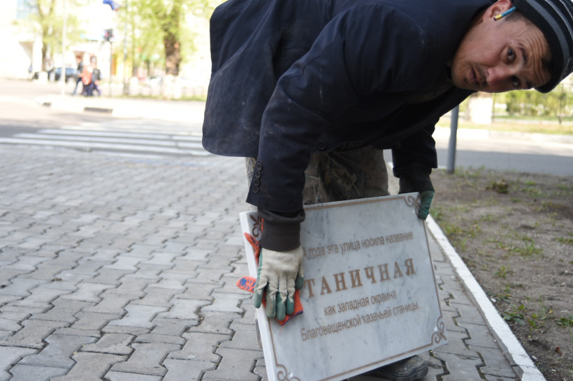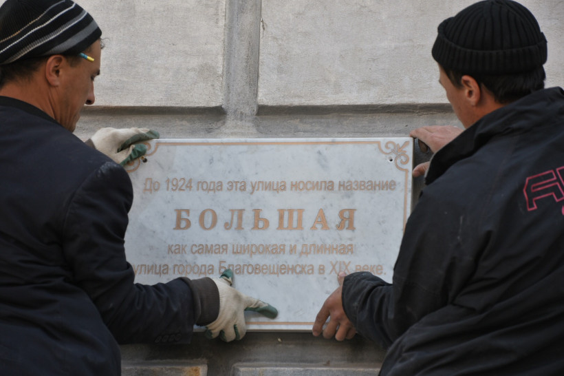 «Таблички из белого мрамора с заполнением гравировки бронзовой краской рассказывают жителям и гостям города, что когда-то улица Ленина называлась Большой, а Трудовая улица – Станичной», — содержится в сообщении мэрии амурской столицы.