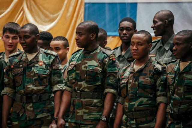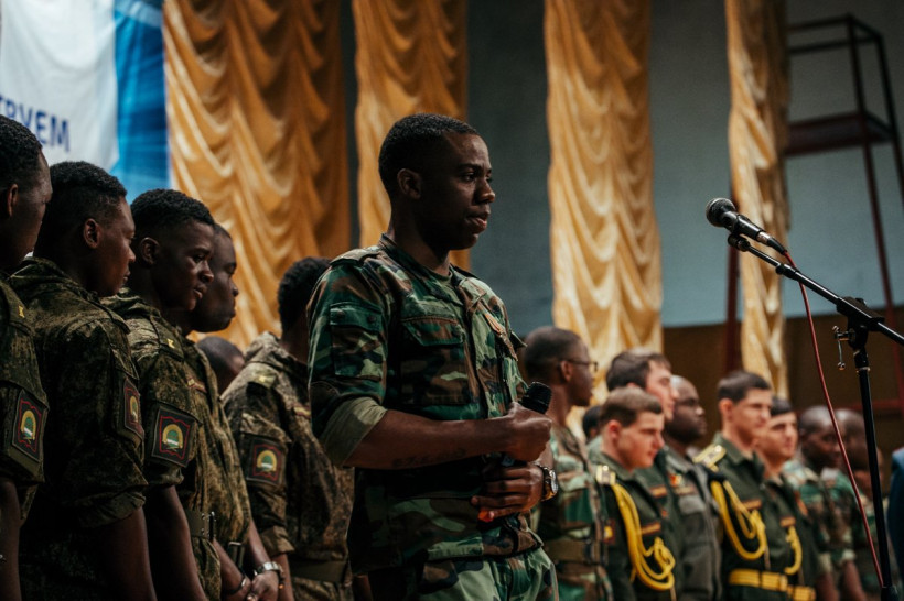Иностранные учащиеся спели русскую народную «Калинку-Малинку», а потом один из курсантов надел платочек и изобразил, как прозвучало со сцены, африканскую доярку. Кроме того, двоковцы устроили на сцене показательные рукопашные бои.
