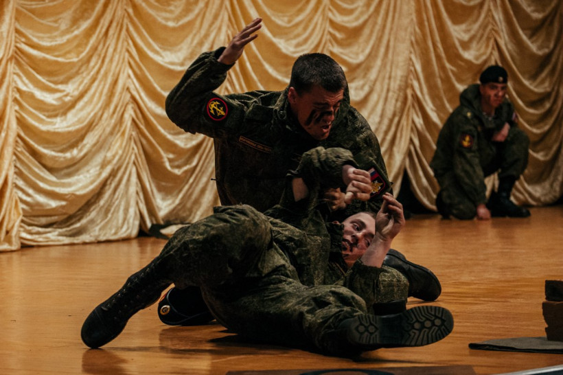 Поразило зрителей, когда один из курсантов схватил зубами стол, а другой бил по мебели ногами. Также двоковцы разбивали руками деревянные кирпичи, на каждом из которых было написано по одной букве из слова «ДВОКУ». Кроме того, учащиеся военного вуза шутили и пели.