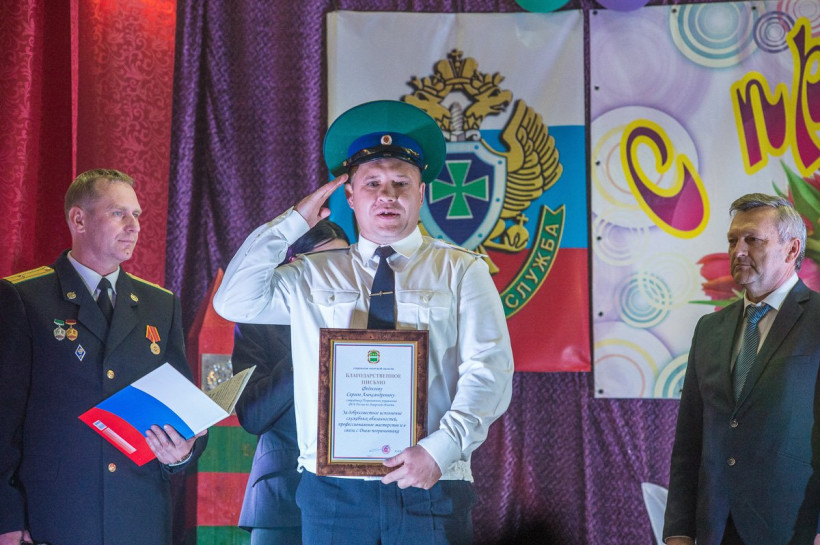 Благодарственные письма от губернатора Приамурья отличившимся пограничникам вручил министр внутренней и информационной политики области Александр Василенко. Подарки передали депутаты Заксобрания области. Но самыми запоминающимися стали красные розы, которые подарил женщинам-пограничникам Александр Синьков. «По роду своей деятельности я долгое время проработал в Константиновке и, признаюсь, всегда уважал и ценил пограничников. Вы — самые близкие к народу из всех военнослужащих, не было такого, чтобы пограничников кто-то не любил», — признался со сцены Александр Николаевич.
