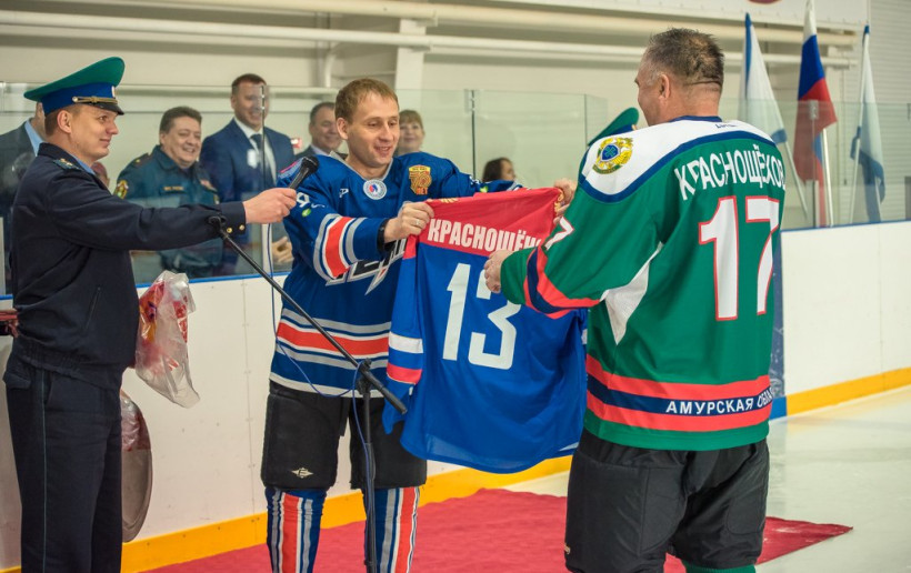 Сегодня, 27 мая, в Благовещенске на стадионе «Спартак» стартовал турнир по хоккею на призы начальника пограничного управления ФСБ России по Амурской области. Соревнования посвящены 98-й годовщине образования погранвойск. На лед вышли губернатор Александр Козлов и начальник ПУ ФСБ России Иван Краснощеков.