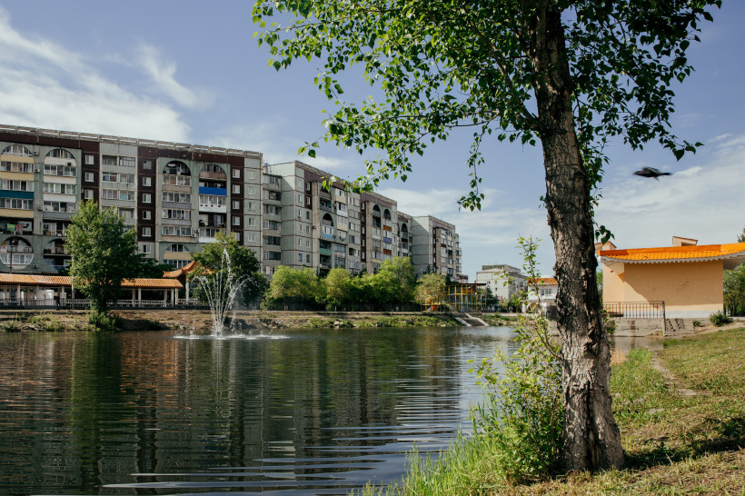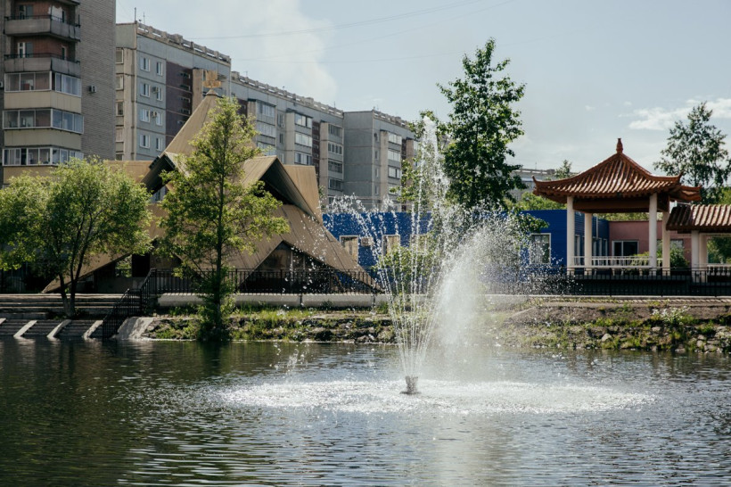 Плавающий фонтан появился в благовещенском парке Дружбы