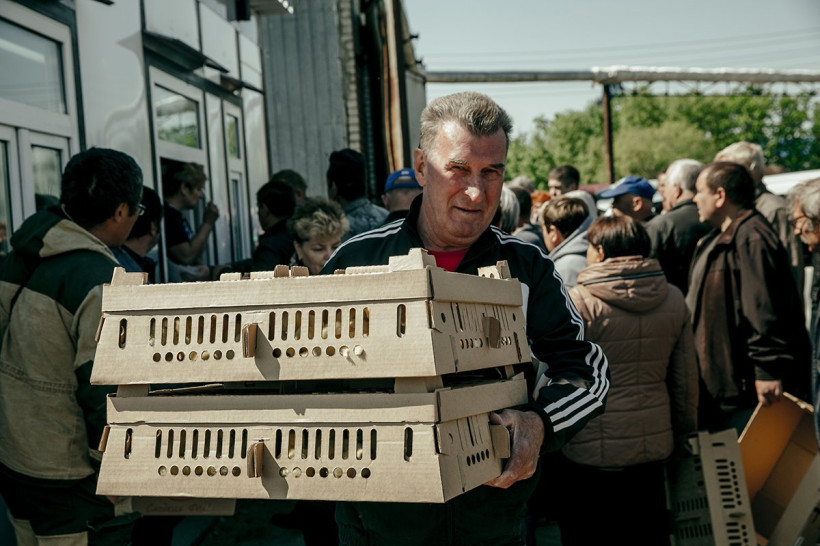 В общей очереди со своей коробкой скромно стоит Виктор Силохин, глава известной в Приамурье агрофирмы «Партизан». В руках — накладная на 35 птенцов.
