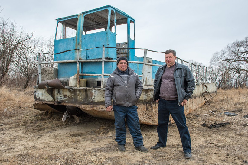 Один из тех капитанов теперь работает в КФХ — управляет выкупленной из совхозного наследства баржей, сердце которой — двигатель легендарного танка Т-34 (их в свое время устанавливали на грузовые суда). Вот уже 40 лет в апреле, когда пройдет шуга, судно спускают на воду.
