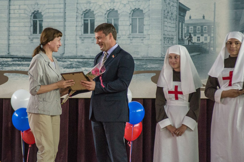 Мэр Благовещенска Валентина Калита поздравила медиков почти по‑родственному: «Не зря сегодня нас встречали сестры милосердия. Менялись здания, поколения, а слово милосердие осталось. В Благовещенске вряд ли найдется семья, которую бы не связывало что‑то с вашей больницей. Есть такая история и в моей семье. Спасибо вам за то, что я могу приходить с работы и обнимать свою внучку, которая родилась в стенах вашей больницы».