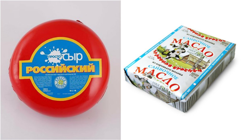 - Сыр «Российский» торговой марки «Столица молока», м. д. ж. 50 %, произведено 13.04.2016, изготовитель ОАО «Алейский маслосыркомбинат» (Алтайский край, Алейск).