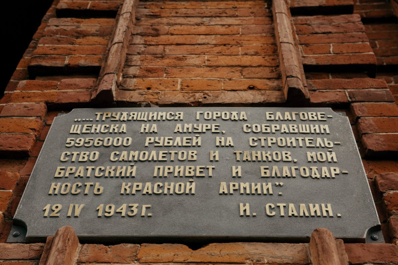 14 апреля 1943 года газета «Амурская правда» опубликовала телеграмму председателя Государственного комитета обороны Иосифа Сталина. Чуть позже слова благодарности отлили в чугун и разместили на фасаде здания главной улицы Ленина в Благовещенске — там размещался горисполком. После смерти верховного главнокомандующего 1 марта 1953-го доска была демонтирована и отдана на хранение в Амурский областной краеведческий музей. Через 63 года сталинская телеграмма вернулась на свое историческое место. Именно здесь, на здании № 161 на улице Ленина, и видел ее благовещенец Владимир Федченко.