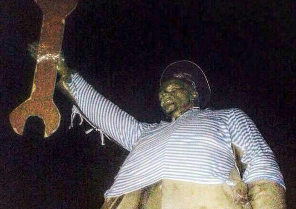Преображался памятник Ильичу и в июне 2015 года. Тогда выпускники морского университета оставили на тельняшке послание.