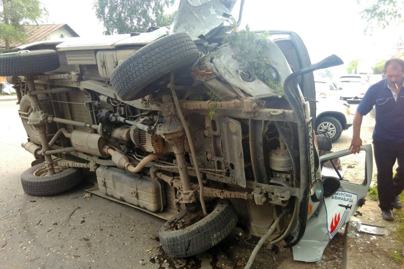 Водитель микроавтобуса Амурской авиабазы потерял управление и перевернулся