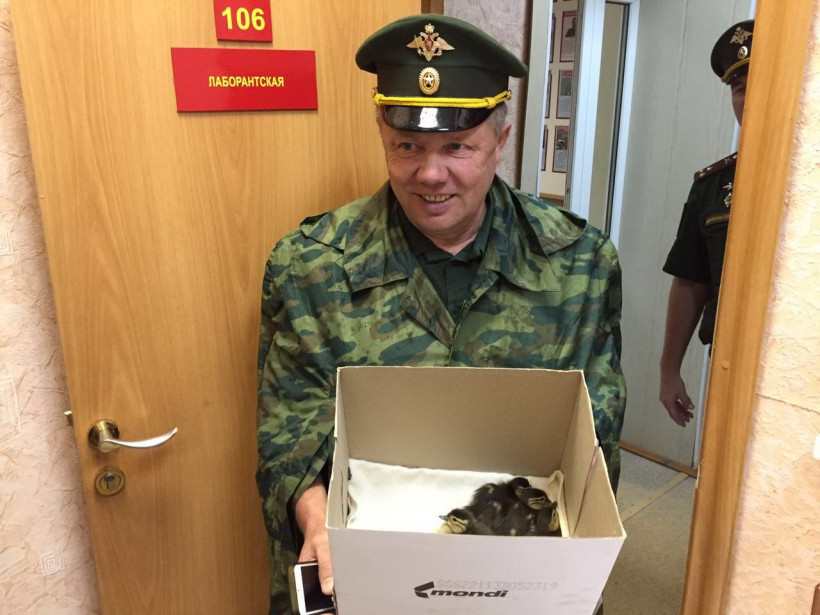 По словам очевидцев, утка с утятами пыталась перейти плац возле первого учебного корпуса, когда ее обнаружили собаки. Маленьких пернатых удалось спасти от животных, а взрослая птица испугалась и улетела. Сотрудники военного вуза поместили птенцов в коробку и принесли в административный корпус. Через какое-то время многодетная мать вернулась за детками.