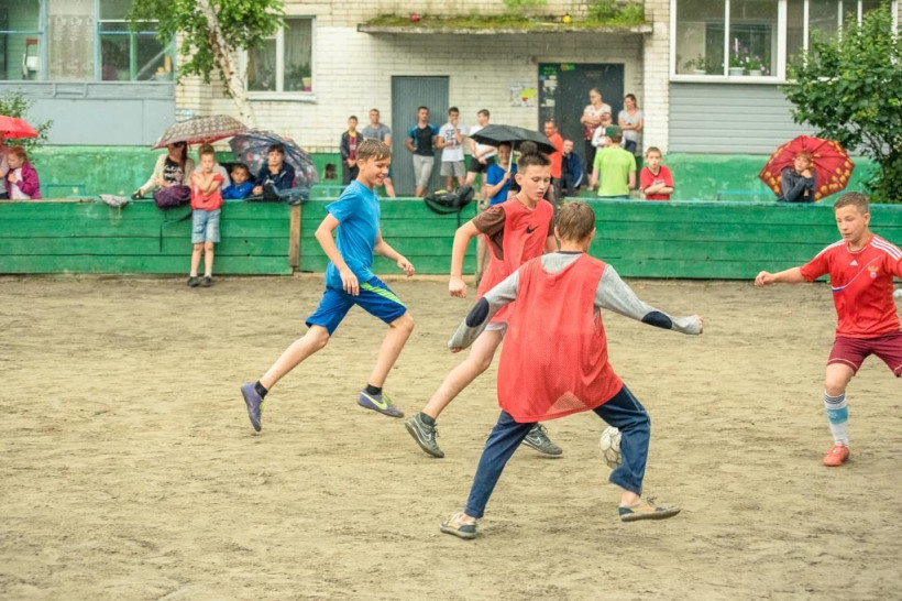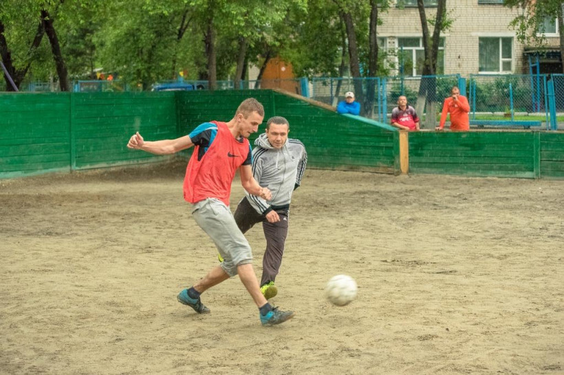 В Благовещенске 2 июля прошел турнир по дворовому футболу. Юные и взрослые игроки гоняли мяч во дворе по улице Ленина, 285. В играх приняли участие три детских и три взрослых команды — это жители близлежащих домов. «Такие матчи проходят уже несколько лет подряд. Традиционно мы проводим по два турнира в год — в начале и в конце лета. В этом году игру из-за дождевого июня пришлось проводить позже, и то сегодня дождь едва не нарушил планы», — рассказывает организатор турнира Олег Имамеев. Цель подобных турниров не только популяризировать спорт, признается организатор, но и привлечь внимание жителей к состоянию дворов, побудить бережно относиться к хоккейным коробкам и другим сооружениям.