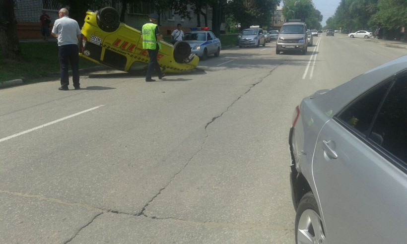 ДТП в Благовещенске: автомобиль такси опрокинулся на крышу