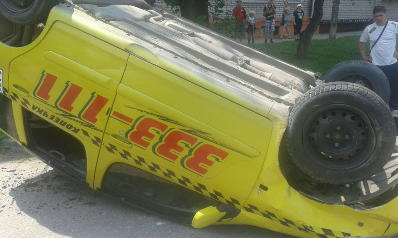 Столкновение двух автомобилей — Toyota Funcargo и Toyota Camry — произошло около 12 часов дня по улице Амурская, 34. Оба автомобиля двигались в сторону Первомайской. Водитель Camry остановился напротив дома номер 34, чтобы повернуть во двор и пропустить встречные машины. Водитель такси отвлёкся на пассажира, не успел среагировать и увидел стоящий перед собой автомобиль в последний момент. Таксист повернул резко вправо, машина ударилась об иномарку и опрокинулась на крышу. В результате пострадала пенсионерка — пассажирка такси. Водители не пострадали.