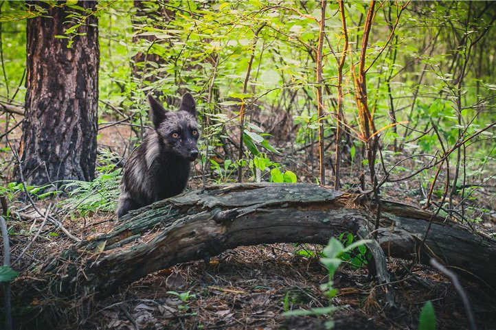 Возле Благовещенска дикая черная лиса устроила фотосессию с жителями города