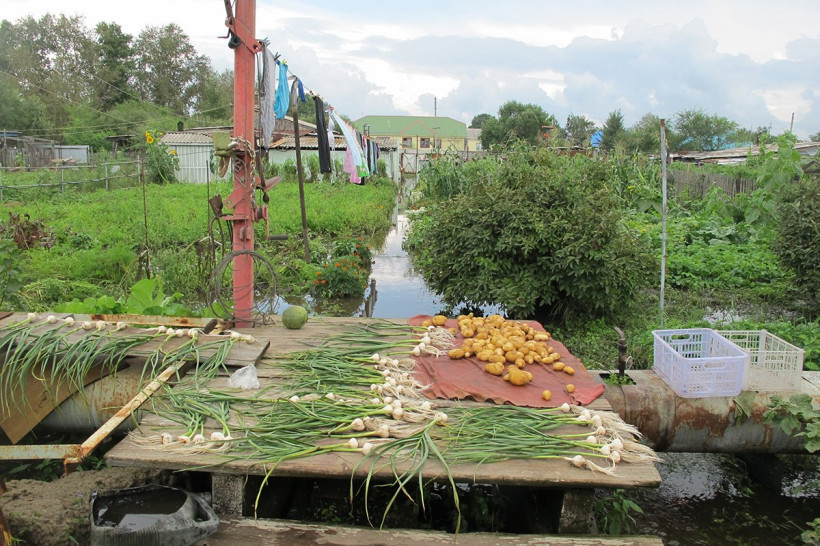— У нас на огороде утонуло все — картошка, капуста, помидоры. А с него кормятся три семьи — кроме нас с мужем, еще и семьи дочерей, — рассказывает пенсионерка Наталья Абламская. — Такая ситуация в нашем районе сложилась после 2013 года. Раньше избыток дождевой воды уходил через канавы в Амур. Но канавы засыпало, кроме того, их регулярно забрасывают мусором жители улицы Ленина. И с 2013 года у нас появился сосед, который для отвода дождевой воды от своего участка перерывает дорогу и уводит поток в придорожные кюветы, которые уже не пропускают воду. В итоге топит наши огороды. И никакие увещевания не помогают — сосед говорит: «Копал и буду копать!»