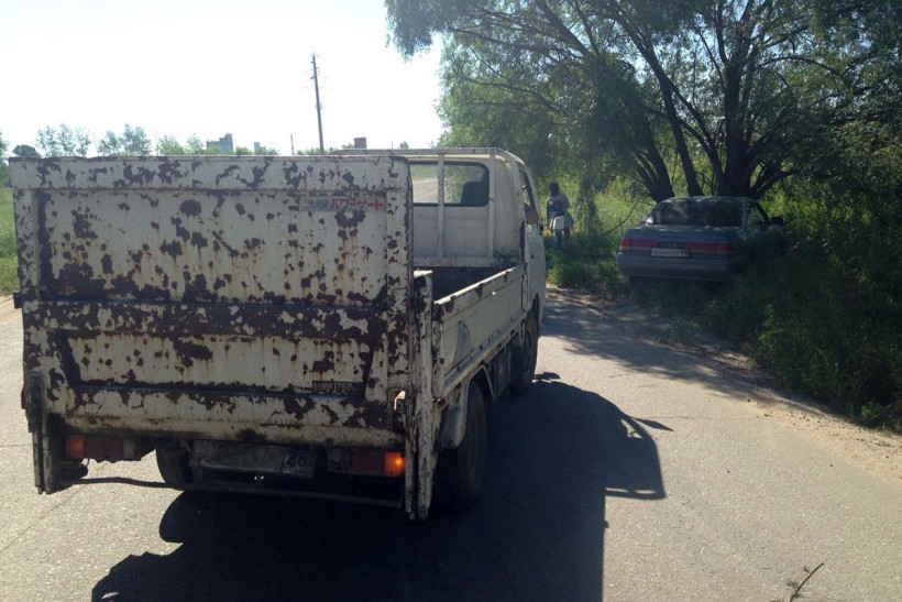 В Благовещенске мини-грузовик вытолкнул с трассы легковушку