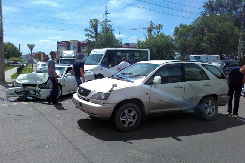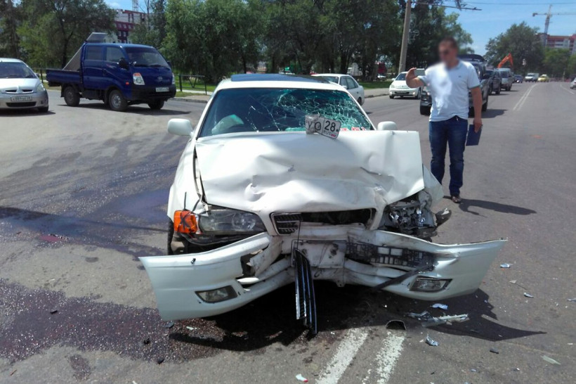 Жесткое столкновение двух автомобилей произошло приблизительно в 13 часов сегодня, 15 июля, в Благовещенске.