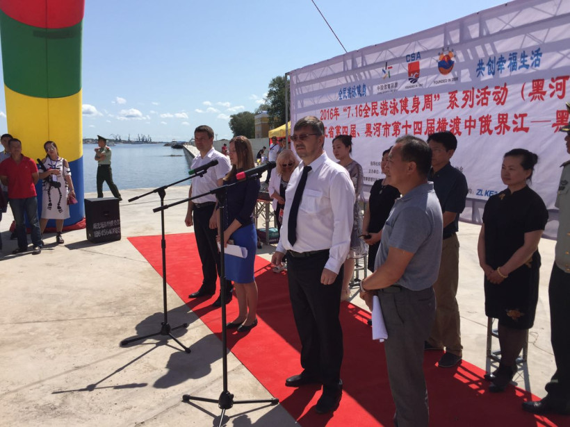 Ежегодный международный заплыв «Дружба» прошел сегодня в областном центре. В мероприятии приняли участие порядка 300 человек. Российских пловцов перед стартом поприветствовал Александр Козлов. Губернатор отметил, что пересечение государственной границы вплавь в рамках спортивного мероприятия давно уже стало доброй традицией и поделился хорошей новостью: на новогодние праздники планируется провести аналогичное дружественное соревнование, но уже на льду — матч по хоккею на Амуре. Российская группа пловцов, среди который был замечен председатель Заксобрания Константин Дьяконов, переплыв Амур, финишировала в районе торгового центра Хэйхэ «ХуаДун», а китайская — в коридоре между улицами Артиллерийской и Мухина в Благовещенске. На берегу пловцов караулила с фотоаппаратом Елена Руденко.