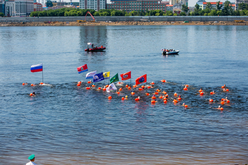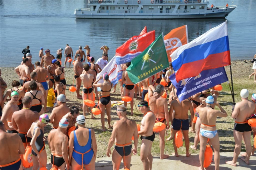 200 китайцев и 100 россиян переплыли Амур: в Благовещенске прошел международный заплыв «Дружба»