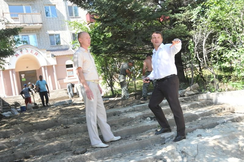 Также спикер вместе с начальником отдела ЖКХ администрации города Андреем Сухоруких осмотрел сквер возле городского краеведческого музея. Парк, заложенный еще в 1917 году, давно требовал внимания властей. После реконструкции он превратится в современную зону отдыха. Здесь хотят установить музыкальные скамейки, клумбы, новые фонари и арт-объект для молодоженов, на фоне которого можно будет сфотографироваться. Реализация проекта обойдется в 15 миллионов рублей. Часть средств уже найдена, работы в сквере начались. Открыть обновленную зону отдыха планируют до конца паркового сезона.