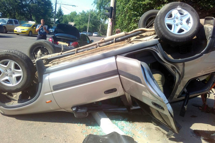 Из-за жесткого удара кроссовер перевернулся на крышу. В ДТП люди не пострадали — участники отделались мелкими ушибами и ссадинами.