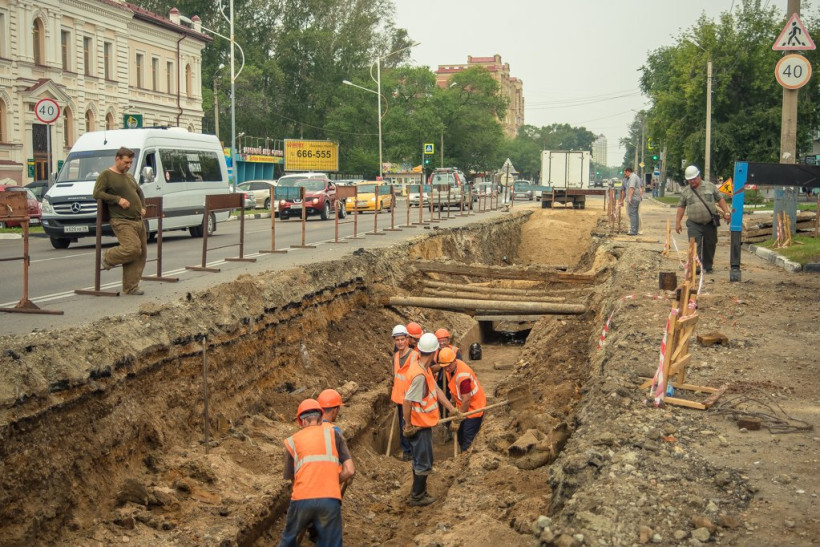 И. о. директора филиала «АКС» «Амуртеплосервис» Сергей Хлебников рассказал, что при выполнении работ есть свои сложности. Первая заключается в неполном на сегодняшний день перекрытии улицы Ленина. Во-вторых, при монтаже теплотрассы в 1987 году рабочие нарушили технологию при засыпке грунта, поэтому обрушились плиты, из-за чего в канал попала земля. Это сильно повлияло на износ труб. Сейчас специалистам приходится вручную выгребать из канала грунт, что увеличивает сроки работ.