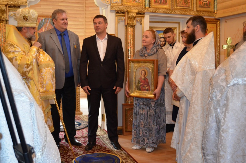Церемония освящения церкви началась с самого утра. На праздник пришли не только жители Соловьевска, но приехали их ближайшие соседи из Уркана. Правящий архиерей поблагодарил прихожан, настоятеля Соловьевского прихода в честь святого великомученика Георгия Победоносца иерея Сергия Наполова, коллектив золотодобывающего предприятия за большую работу по строительству церкви.