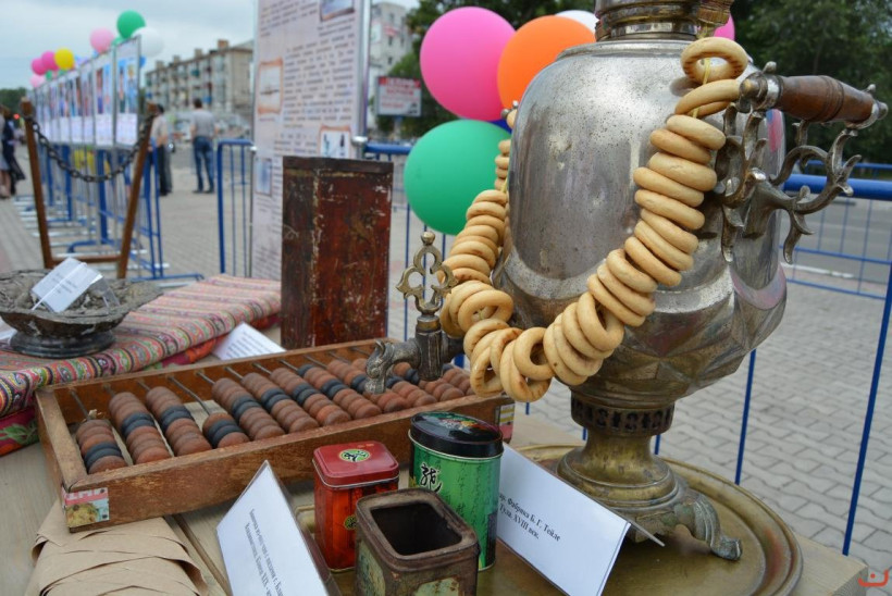 В выставку под открытым небом вошли стенды-витрины с фотографиями первых торговых точек города, а также предметы, которые десятки лет назад были непосредственными участниками торгового дела: счеты, весы, различные приспособления. А после устроили квест по центральной площади города. Около 20 школьников приняли в нем участие. Победила команда «Рынок».