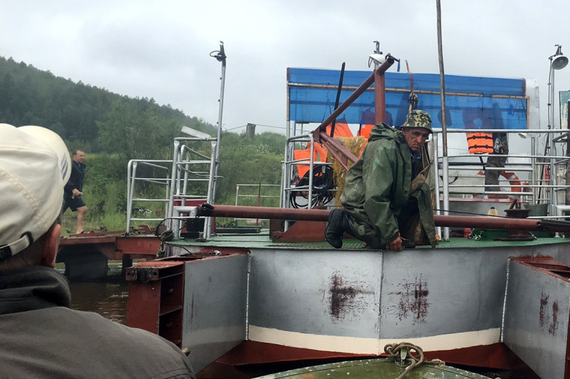 Еще полчаса ожидания — и с другого берега послышался долгожданный рев лодочного мотора. Спустя пару минут из тумана сильное течение вынесло моторную лодку. Еще через 30 секунд она причалила к берегу. «Я вас слышал, но из-за тумана ничего не видел — не рискнул плыть, вдруг дерево не замечу!» — признается сотрудник парома Андрей Щеголихин.
